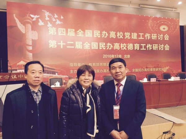 日前,由教育部思想政治工作司指导,全国民办高校党建研究分会、全国民办高校德育研究分会主办的第四届全国民办高校党建工作研讨会暨第十二届全国民办高校德育工作研讨会在北京召开。教育部思政司副司长王光彦、教育部发展规划司副司长郭春鸣、北京市教育工委常务副书记张雪等领导出席开幕式。来自全国的200余所高校党委书记、校长、德育负责人参加了大会。我校党委书记张莉应邀参加了会议。