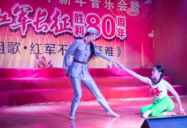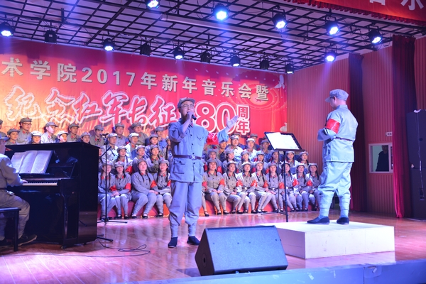 为纪念中国工农红军长征胜利80周年,引领广大师生继承和弘扬伟大的长征精神,12月19日晚,艺术学院在大学生活动中心隆重举行《长征组歌》暨2017年新年音乐会。校长施昌海,常务副校长傅洪涛,副校长王志华、毛海涛,校长助理杨高伟,信阳师范学院公共艺术教育中心主任、市音乐家协会副主席杨健,我校有关单位负责人、部分专家教授和600余名师生聆听了音乐会。