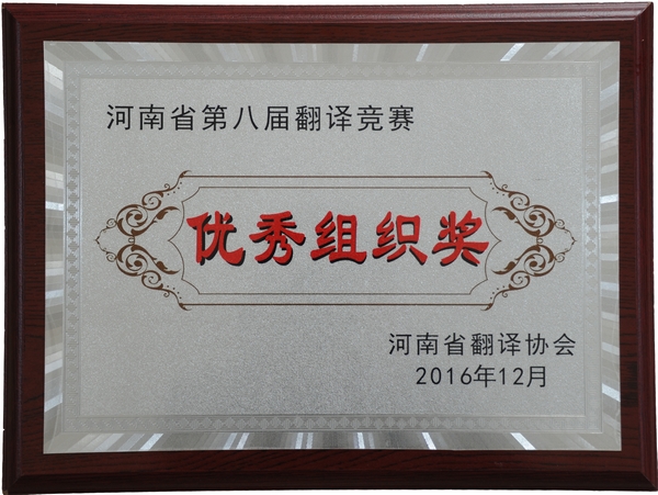 日前,由省翻译协会举办的河南省第八届翻译竞赛落下帷幕,我校在本次竞赛中再创佳绩,继获得第七届翻译竞赛优秀组织奖之后,再次获得第八届翻译竞赛优秀组织奖。