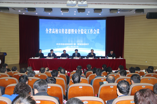 3月3日,省委高校工委、省教育厅组织召开2017年度全省高校宣传思想暨安全稳定工作会议,系统谋划高校宣传思想工作、意识形态工作和安全稳定工作,对全省高校宣传思想和安全稳定工作进行部署。省委高校工委专职副书记、省教育厅党组副书记郑邦山出席会议。省委宣传部、省委维稳办、省委防范处理邪教办有关负责人和省教育厅办公室、思政处负责人出席会议,全省高校有关方面负责人等500余名代表参加了会议。会议由省教育厅思政处处长李培俊主持。我校有关部门负责人张甲楠、叶十朋参加了会议。