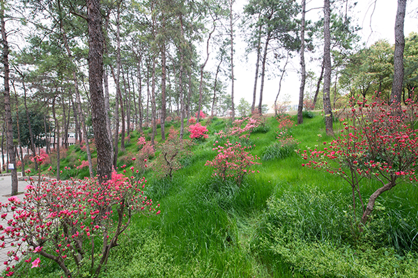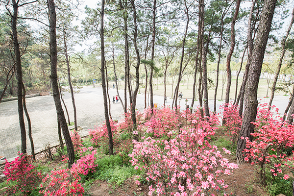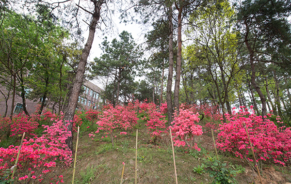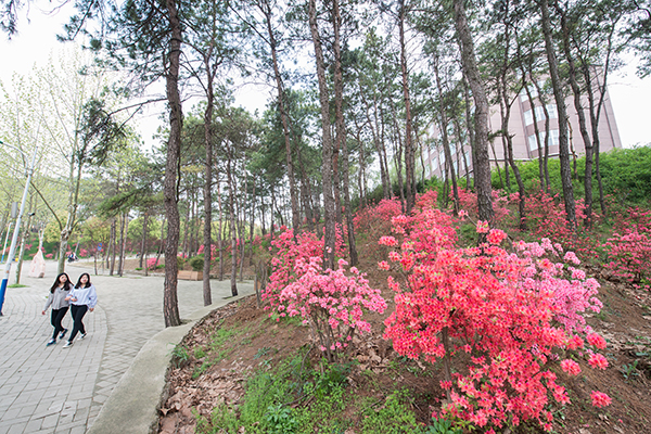 在我们美丽的校园里,与这漫山遍野的杜鹃竞相开放着的,还有娇粉的樱花、幽紫的玉兰、纯白的梨花、艳黄的连翘、枣红的枫叶……这些花卉与信阳学院漫山遍野的杜鹃花相映成趣,典雅大方地呈现在信阳学院这片沃土上,令师生和来宾赏心悦目,流连忘返。