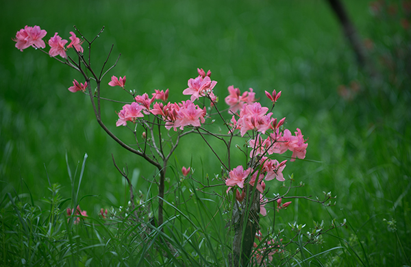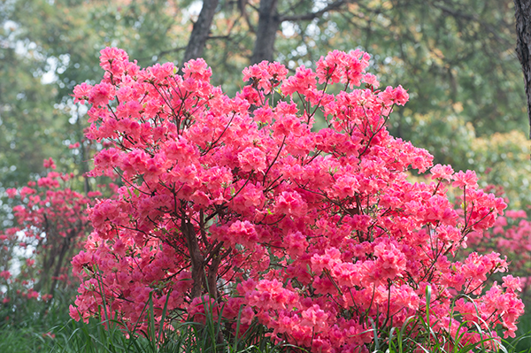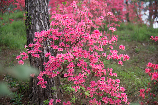 “花中此物似西施,芙蓉芍药皆嫫母。”白居易在诗歌中将杜鹃花拟作西施,可见他对杜鹃花的推崇。杜鹃花跻身于中国十大名花之列,深受人们喜爱。她拥有映山红、山石榴、山踯躅、红踯躅等许多别名。杜鹃种类多,花期长,五颜六色,璀璨夺目,春暮繁花似锦,夏日茂密青翠,秋冬又有色叶,四季可赏,在所有观赏花卉中,堪称花、叶兼美,地栽、盆栽皆宜的花种,因而在我国许多地方都能目睹到她的倩影。