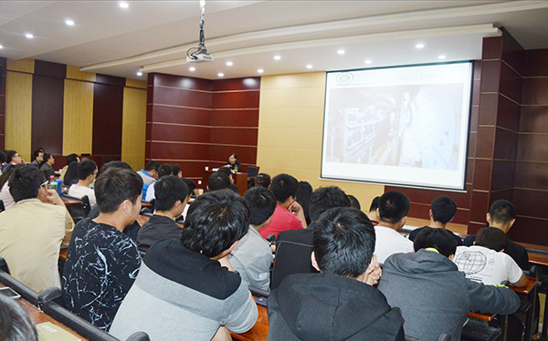 报告会上,刘教授首先介绍了隧道暗挖法施工及世界上最先进的超大型隧道掘进专用设备——(12.10米)大直径泥水盾构机,并就武汉市地铁8号线越江隧道项目大直径泥水盾构施工成本管理遇到的特殊问题及后期采取的解决方案,详细介绍了编制12米级泥水盾构企业定额的方法、主要问题及现实意义。刘教授还结合多年来组织指导学生参加全国高校BIM设计大赛的经验,就工程管理专业发展特点及BIM技术的应用为工程管理专业学生做了详细讲解,鼓励同学们要加强自身专业技能训练,积极参加各类专业赛事,促进综合能力提升。