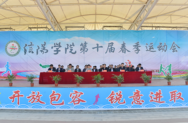 毛海涛致闭幕词。他代表学校,向取得优异成绩的运动员、教练员和各代表队致以热烈的祝贺!对为运动会顺利进行付出辛勤努力的裁判员和全体工作人员表示衷心的感谢! 毛海涛指出,本次运动会准备充分、组织周密、纪律严明、成果丰硕,凝聚了广大师生的心血与汗水,是一次热烈、隆重、精彩、圆满的体育盛会。开幕式上,太极拳表演自信包容、刚柔相济,团体啦啦操比赛朝气蓬勃、充满活力;赛场上,运动员顽强拼搏、力争上游,裁判员恪尽职守、秉公裁判;看台上,观众热情文明、秩序井然,拉拉队激情满满,豪情万丈;赛场外,工作人员兢兢业业、多方协作,志愿者不畏困难、无私奉献。由此,也创造了一批新的竞赛纪录,产生了一大批先进单位和个人,受到了学校的隆重表彰和奖励。 毛海涛希望大家把赛场上表现出来的自信从容、锐意进取、永不言弃、团结友爱的精神带到以后的工作、学习和生活中去,以“更高、更快、更强”的标准谱写个人奋进和学校转型发展的新篇章! 毛海涛宣布:信阳学院第十届春季运动会胜利闭幕!