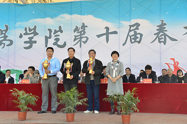 在激昂欢快的乐曲声中,高云为荣获团体总分前三名的单位颁奖,施昌海为荣获优秀组织奖的单位颁奖,傅洪涛为荣获精神文明奖的单位颁奖,毛海涛为荣获啦啦操比赛前三名的单位颁奖。