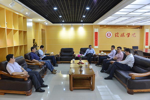 为深入贯彻落实全国高校思想政治工作会议精神,按照教育部2017年高校思想政治理论课教学质量年专项工作相关要求,5月10日,河南省委高校工委专职委员陈垠亭,河南中医药大学郭小磊,河南省高校思想政治理论课专业委员会副主任、信阳师范学院原马克思主义学院院长程东阳莅临我校检查指导思想政治理论课建设工作。天泰集团董事长高峰、学校理事长高云热情接待了陈垠亭一行。