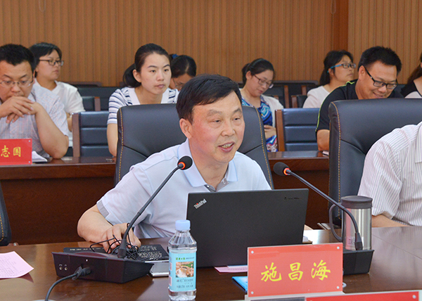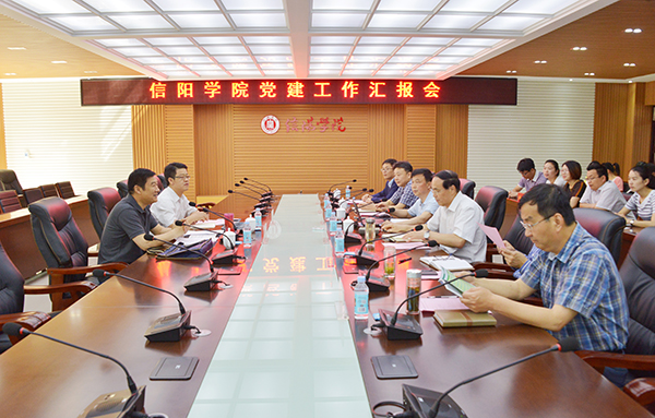 施昌海向督查组汇报了信阳学院按照中央和省委要求加强和改进党建工作的基本情况,以及贯彻落实全国和全省高校思想政治工作会议精神的基本做法。近年来,信阳学院在转设更名和事业发展中坚持党的建设同步谋划、党的组织同步设置、党的工作同步开展,及时调整充实校纪委和党委职能部门领导力量,加强各单位党组织建设,发挥党组织政治核心作用和党员先锋模范作用,实现了党的建设工作全覆盖。特别是围绕落实“立德树人”根本任务,健全了学校思想政治工作领导体制和工作机制,建立了理事会关心支持、党委主导实施、党政工团齐抓共管、全校上下共同参与的思想政治工作大格局;进一步强化思想政治工作引领,创新了校园网站、大一新生学习生活导师制、心理健康教育、校园文化活动、社会义务公益活动、辅导员队伍素养培训等一系列工作品牌。但当前仍然存在着党员干部队伍年龄结构不够合理、工作经验积累不足等问题,希望上级组织能够进一步加强对民办高校党员干部和辅导员、思政课教师的培训与指导。