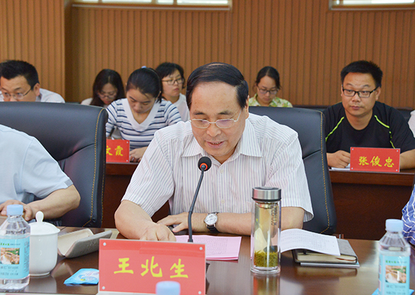 王北生致欢迎词。他代表学校对省督查组领导表示热烈欢迎,并介绍了学校的发展概况和办学成果。他说,近年来,在省委高校工委和省教育厅的正确领导下,信阳学院坚持社会主义办学方向,紧紧围绕立德树人根本任务,坚持“师生为本,服务社会”办学理念和“质量立校、特色兴校”发展战略;坚持把学校党建、思想政治工作和学校事业发展目标有机结合起来,努力在建强班子、建优组织、建好队伍、健全制度、以廉育人、培育思想政治工作品牌、创新工作形式等方面不断探索,形成了良好育人条件和氛围。这次省委高校工委督查组莅临学校检查指导工作,是对学校党建和各项工作的有力促进。学校将按照督查组的指导意见,进一步加强和改进学校党建和各方面工作。