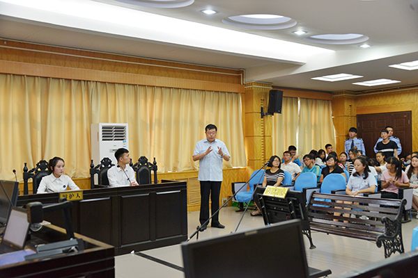 活动开始前,王志华为本次活动致辞。他代表学校感谢信阳市中级人民法院一直以来对我校法学专业学生活动的支持与指导,期待今后双方进一步加强院校合作,不断拓宽合作模式。同时,他希望同学们珍惜此次教学实践活动,以此为契机,在未来学习过程中注重理论联系实际,将课堂所学知识与法律实践有机结合起来,早日成长为国家和社会的栋梁之才。