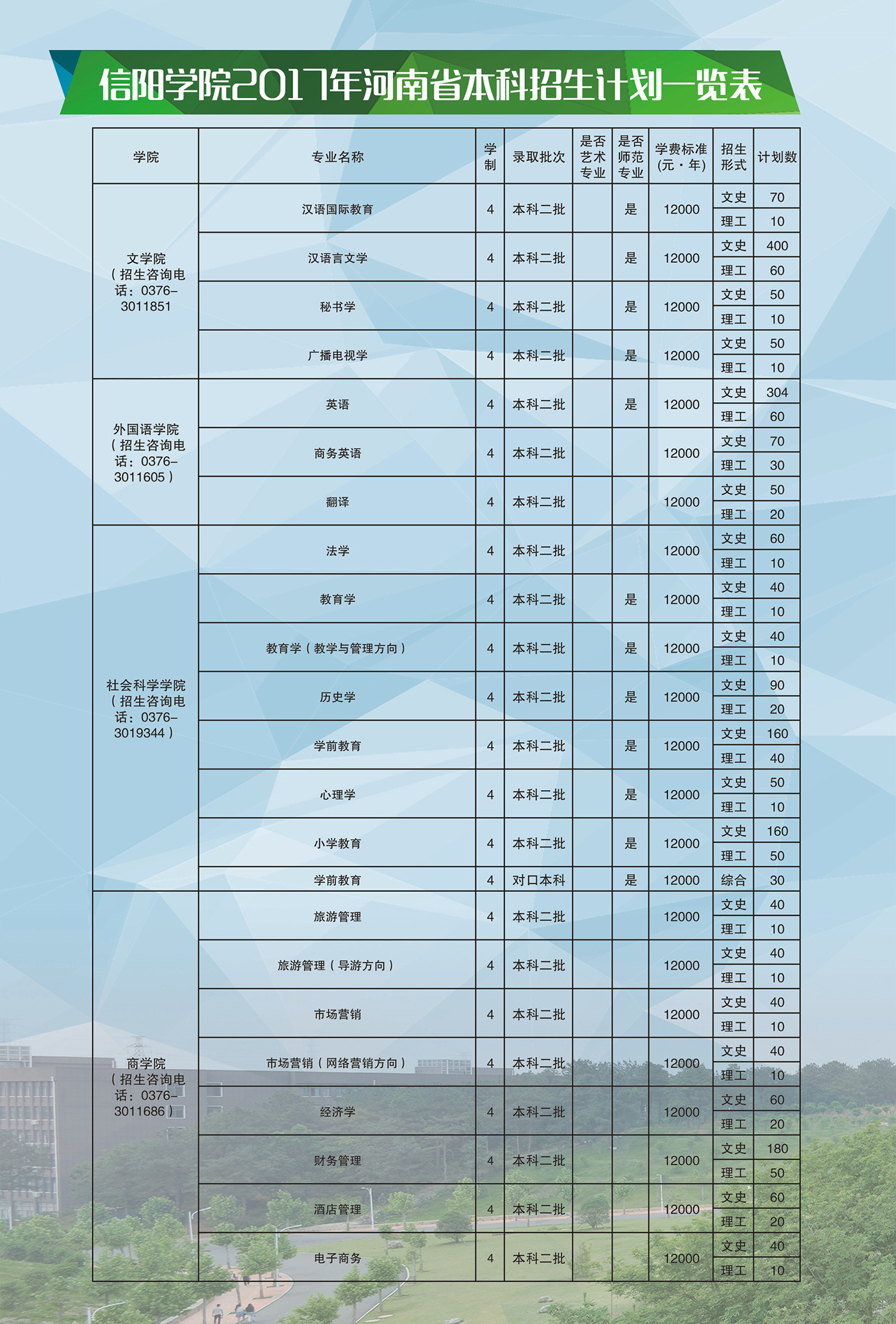 欢迎省内外优秀学子选报信阳学院!