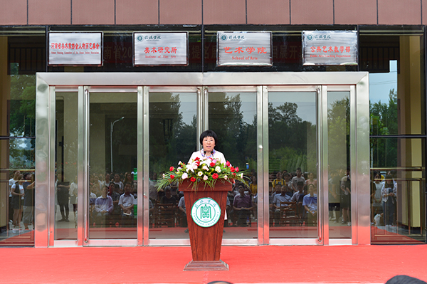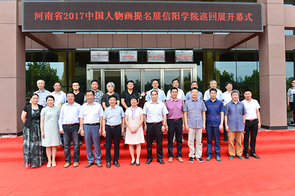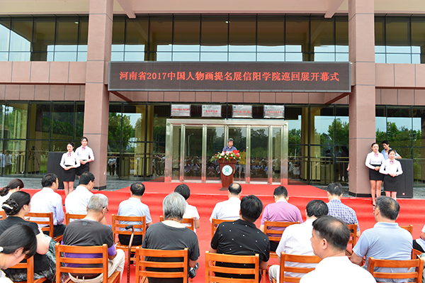 6月21日上午,河南省2017中国人物画提名展信阳学院巡回展开幕式在我校艺术广场隆重举行。信阳市文联主席殷丽、信阳市群艺馆副馆长、信阳画院院长李一冉、信阳市民间文艺家协会主席许煦、信阳市美术家协会副主席沈锋、信阳市古琴协会副主席沈亚东、信阳师范学院美术与设计学院副院长邹东升、信阳师范学院美术与设计学院副院长张伟等校外嘉宾受邀莅临巡回展开幕式。我校理事长高云、名誉校长王北生、专职书记施昌海、常务副校长傅洪涛、副校长王志华、副校长毛海涛、校长助理杨高伟出席开幕式。各学院、各部门和研究所负责同志及部分师生代表参加了开幕式。艺术学院院长黄任歌主持了开幕式。