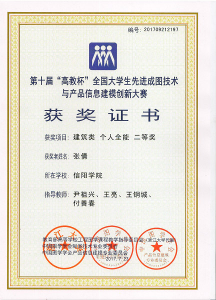 全国大学生先进成图技术与产品信息建模创新大赛是国内图学类课程最高级别的国家级赛事,堪称图学界的奥林匹克盛会,本次比赛共有来自全国316所高校的443支队伍、4000余名师生参与,创办赛事以来参赛学校数量新高。本赛事涵盖了建筑类、机械类、水利类、道桥类四个类别的团体竞赛和个人全能竞赛。 我校由土木工程学院副院长潘卫国领队,王钢城教授和青年教师尹祖兴、王亮、付善春等担任指导教师,王涛、徐振龙、侯天宇、张倩、孙东晨、章森、王耀聆、游自光 志刚等九位学生选手组成的代表队参加了建筑类别的大赛,比赛由尺规绘图、计算机绘图和三维建模三个部分组成,分两个阶段比赛,比赛过程紧张激烈。通过9名学生的不懈努力,我校代表队斩获建筑类团体二等奖1项,单项三维建模一等奖1项,个人全能二等奖5项,单项尺规绘图二等奖4项,单项三维建模二等奖3项以及优秀指导教师二等奖4项,共计获得一、二等奖18项。这也是继我校首次参加的河南省第六届结构模型设计竞赛(国赛分区赛)荣获2个一等奖、最佳结构设计奖、最佳结构制作奖和优秀组织奖等5大奖项后的又一次重大突破。我校土木工程学院今年首次组队参赛,得到了集团董事会、学校理事会和校领导的大力支持,学院高度重视,精心组织,选派优秀师生前往湖北工业大学进行深入的学习交流,对参赛师生进行高效的集中训练,最终取得了今天可喜的赛绩,也进一步说明我校土木工程学院在教书育人,培养应用技术型人才的方面上有了新的提升。