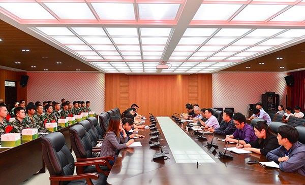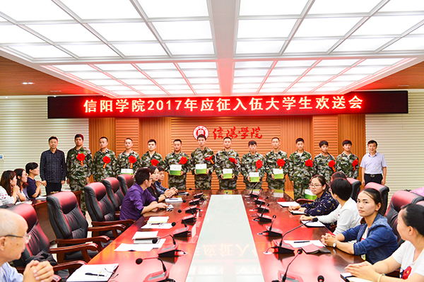 携笔从戎挥洒青春,建功立业报效祖国。8月31日下午,我校2017年应征入伍大学生欢送会在行政楼208会议室举行。专职书记施昌海、副校长王志华出席会议,学工部和人民武装部全体成员、各学院党总支书记、学生工作负责人、入伍学生及其辅导员参加了会议。会议由学工部负责人余婷婷主持。