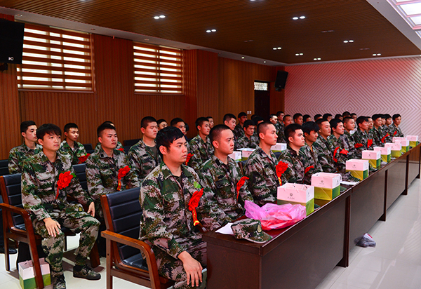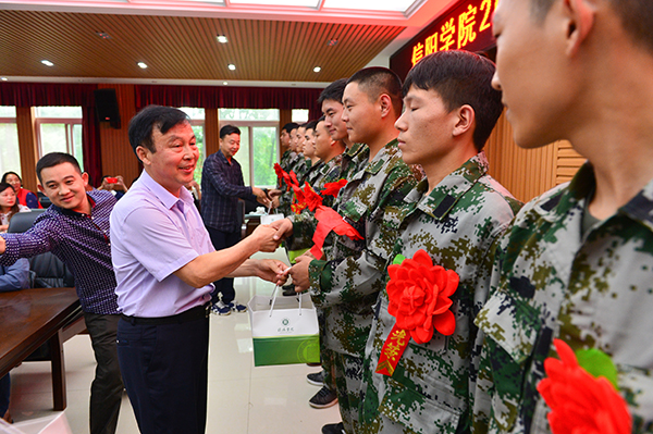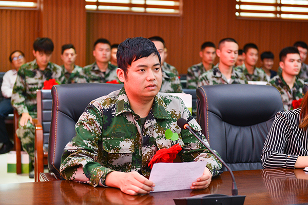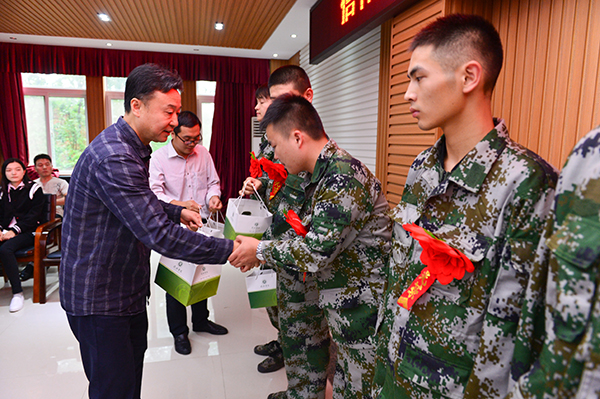 会上,37位入伍同学逐一做了自我介绍,吕帅杰作为学生代表进行了发言,表达了对母校和老师培育之情的感谢。施昌海、王志华代表学校向应征入伍的同学们赠送了纪念品并合影留念。