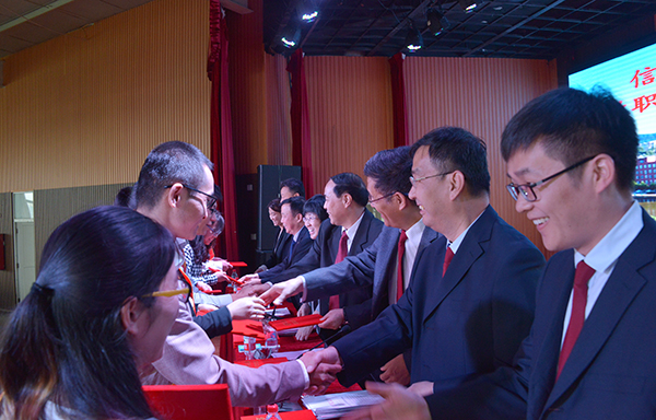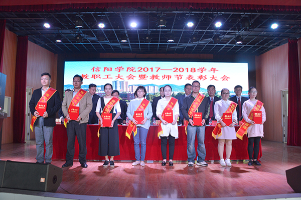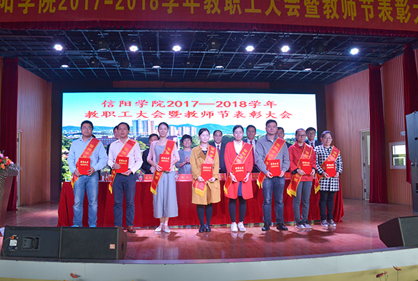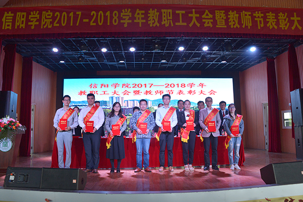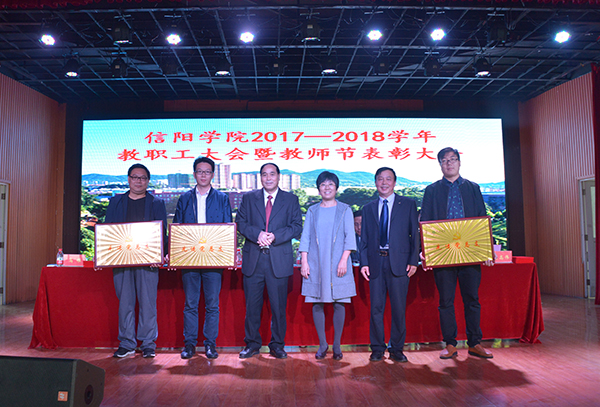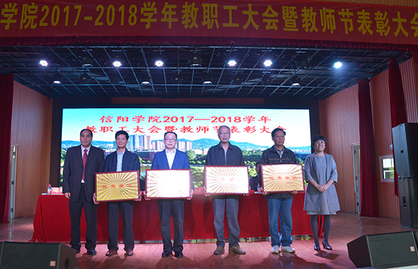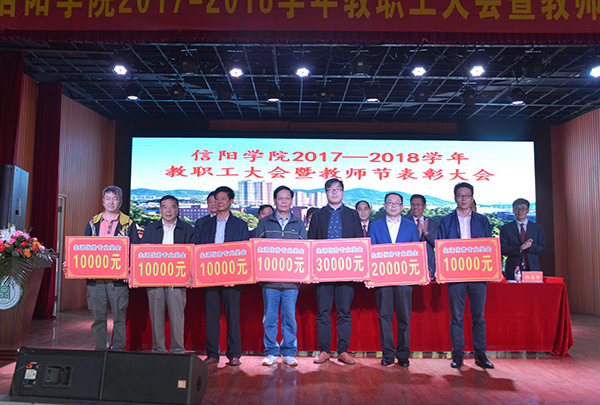 在喜庆的气氛中,大会举行了隆重的颁奖仪式。高云、王北生为荣获2016—2017学年目标管理考核优秀单位颁奖;高云、王北生、施昌海为先进基层党组织颁奖;全体校领导分别为荣获2017年生源优势专业获奖代表,2016—2017学年省级、校级优秀共产党员、优秀党务工作者代表,2016—2017学年优秀导师代表,2016年度河南省文明教师,2016年度河南省民办教育先进个人和校级优秀教师颁奖。