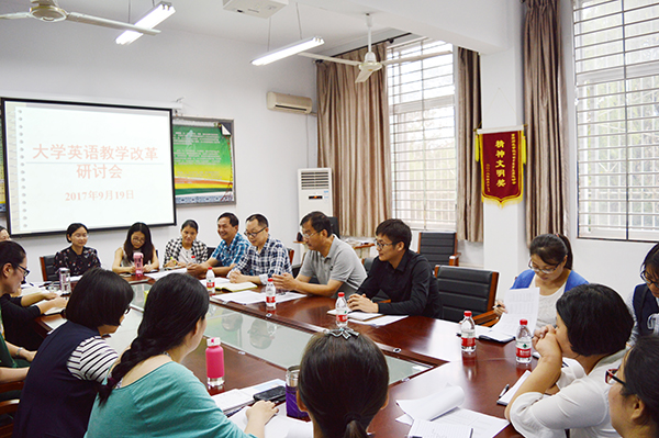 日前,大学英语教学改革研讨会在外语楼110室召开。副校长毛海涛、校长助理杨高伟出席研讨会。教务处副处长邓荣娟、外国语学院院长罗德喜、党总支副书记胡秀云、康传彪副教授及大学英语教研室全体教师参加了本次研讨会。会议由罗德喜主持。