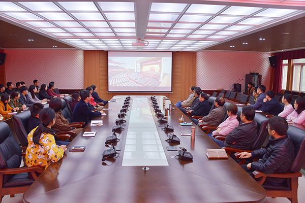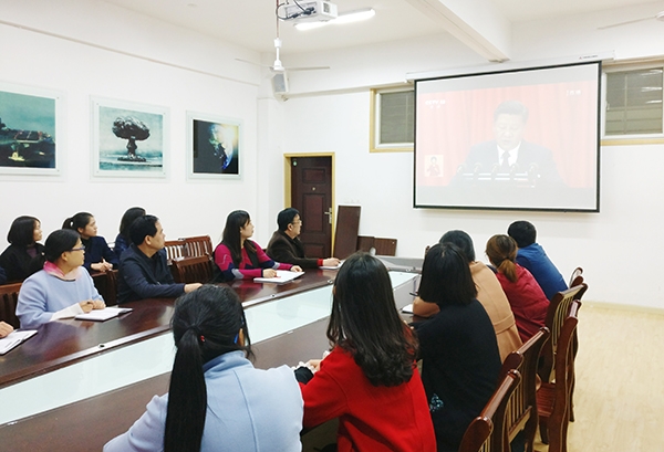在聆听了习近平总书记向大会作的主题为《不忘初心,牢记使命,高举中国特色社会主义伟大旗帜,决胜全面建成小康社会,夺取新时代中国特色社会主义伟大胜利,为实现中华民族伟大复兴的中国梦不懈奋斗》的重要报告后,广大师生一致认为,习近平总书记的报告高瞻远瞩,催人奋进,要深入学习领会大会精神,坚定理想信念,志存高远,脚踏实地,积极为党和国家事业发展及学校内涵建设贡献智慧和力量。