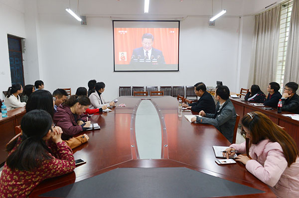 外国语学院师生积极收看十九大开幕会直播