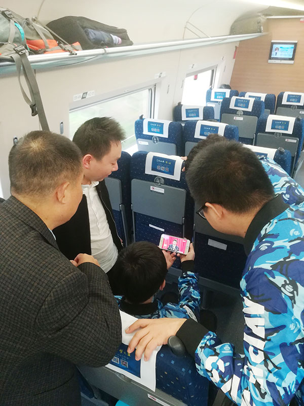 土木工程学院参赛师生在火车上积极收看十九大开幕会直播
