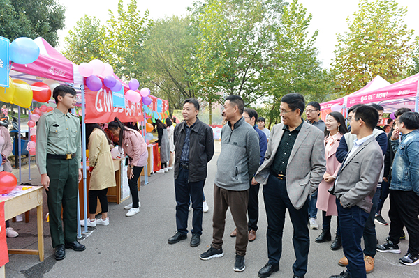 青春献礼十九大,缤纷社团嘉年华。10月21日至22日,我校2017年社团统一招新活动在理工楼前广场举行。集团董事长高峰、常务副校长傅洪涛、副校长王志华莅临现场指导社团招新工作。有关方面负责人张富庄、李赟、余婷婷、郑山峰,各学院学生工作负责人、团总支书记、社团指导教师和社团联合会一起组织了社团招新活动。数千余名2017级新生参与了本次活动。