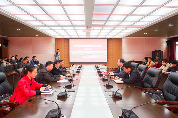 施昌海致欢迎词。他代表学校对省教育厅思政处领导在十九大胜利召开之际莅临学校指导表示热烈的欢迎,并介绍了学校的发展概况和办学成果。他说,信阳学院作为省会以南唯一的一所民办本科高校,是天泰集团董事长高峰先生和学校理事长高云女士回馈社会和桑梓的产物。多年来,学校在上级领导和社会各界的关心支持下,坚持全面贯彻党的教育方针,坚持社会主义办学方向和公益性办学宗旨,坚持“师生为本、服务社会”发展理念和“质量立校、人才强校、特色兴校”发展战略,不断改善办学条件,推进内涵建设,赢得了健康快速发展和良好办学声誉。目前,学校的党建和思想政治工作已初步形成了理事会和党政工团齐抓共管、全校上下共同参与的领导机制和工作机制,打造一系列育人品牌。他希望乘借党的十九大东风,在上级领导的支持和指导下,经过全校师生的共同努力,使学校党建和思想政治工作及各方面工作再上一个新的台阶。