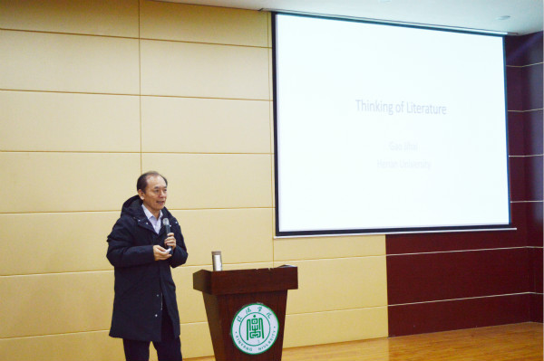 高继海以“Thinking of Literature”为主题,从马斯洛需求层次理论角度解释了文学在人类需求层次中的位置,通过杨振宁与莫言“科学与文学的对话”,讲解科学与文学之间的差异。引用朱熹、王国维等名家的经典著作解读了文学的内涵与外延,分析了不同文学体裁的特点。以中外文学名家的创作经历,说明文学作品对人的净化作用,文学写作的意向性,文学作品之间的互文性,文学作用的双重性,文学作家和批评家身份的重叠性等文学的作用、价值及发展动向。