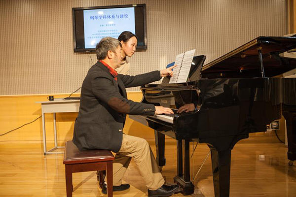 学术讲座之后,黄任歌为河南大学钢琴专业在校学生上了一堂生动的钢琴公开课,他富有激情的精彩示范与讲解,赢得了现场师生阵阵掌声。