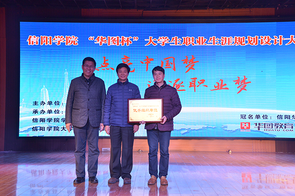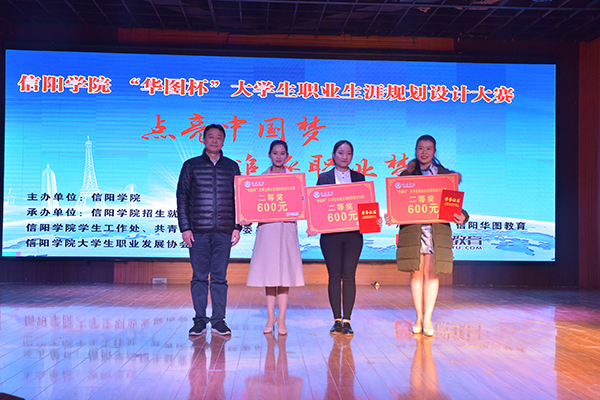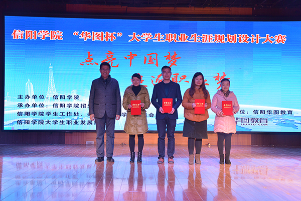 11月30日,由我校招生就业处、学生工作处、团委以及大学生职业发展协会联合主办,华图教育冠名的“华图杯”“追逐职业梦 点亮中国梦”信阳学院大学生职业生涯规划设计大赛在我校大学生活动中心隆重举行。常务副校长傅洪涛、副校长王志华、校长助理杨高伟出席了本次大赛,并应邀担任大赛评委。部分学院院长、党总支书记以及有关部门负责人刘建中、张富庄、李赟、张甲楠、郭二军、张红梅、郑山峰等观摩了大赛。
