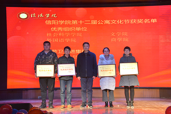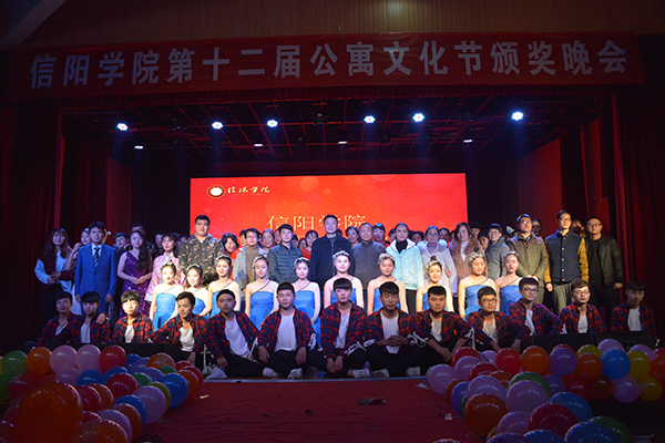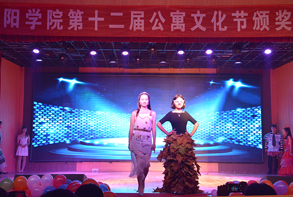 颁奖晚会在动感十足的现代舞表演中拉开帷幕。舞蹈、小品、情景剧、走秀、歌曲等多种节目类型精彩上演,既反映了大学生丰富的公寓文化生活,又展现了同学们的艺术才华。小品《四大才子》以幽默诙谐的内容博得了台下阵阵掌声;商学院推送的《斗寝》以我校文明寝室建设的故事为素材,以独特的表现形式,反映了同学们参与文明寝室建设的点点滴滴;《信阳学院高定秀》汇集了文化节中户外走秀大赛的优秀作品,作品材料来自寝室淘汰的床单被罩等废旧物品,由宿舍成员们共同设计手工完成,紧扣环保的主题,充分发挥同学们的创新意识,为全体师生展出了一件件设计精美、漂亮时尚的“霓裳羽衣”;《宿舍风波》将学生宿舍经常出现的矛盾淋漓尽致地展示出来,紧扣公寓文化节的主题,宣传和谐温馨的宿舍文化;古筝伴舞《大鱼》古典而唯美,给大家带入轻盈灵动、心旷神怡的美妙境地;男生舞蹈《See You Again》将时下流行的音乐元素完美展现出来,彰显了青春与活力;宿管阿姨和同学们合唱的《和你一样》,让宿管阿姨与学生之间胜似亲人的深厚情谊淋漓再现,将晚会推向了高潮;晚会在歌曲《奔跑在孤傲的路上》的优美旋律中结束。