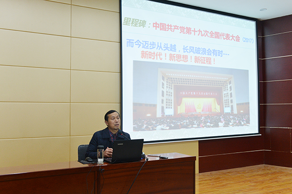 12月13日,中共信阳市委党校党史党建部副主任、信阳市党史党建领域知名专家、信阳市委十九大精神宣讲团成员郑乃红,在我校图书馆102做了题为《深入学习贯彻党的十九大精神》的报告。我校专职书记施昌海出席报告会。商学院党总支书记张富庄、文学院党总支书记张甲楠,社会科学学院党总支书记李赟,数学与信息学院党总支书记张俊忠和各学院教师代表、学生党员、入党积极分子等200余人共同聆听了报告会。党委宣传部负责人李肖利主持了报告会。
