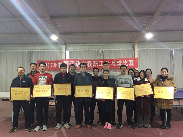 12月5日-8日,学校2017年秋季运动会教职工乒乓球比赛在教二楼乒乓球馆成功举行。本次比赛设有团体赛、男子单打、女子单打比赛等三个运动项目,共有10支代表队,70余名运动员参加。