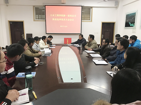 12月5日下午,土木工程学院党总支换届选举党员大会在理工楼201会议室隆重召开,党总支书记潘卫国及学院全体党员出席会议,唐辉同志主持了会议。会议通过了潘卫国同志所做的工作报告,选举产生了潘卫国、郗利选、王亮、徐超、方超等5名新一届党总支委员。潘卫国当选为书记。