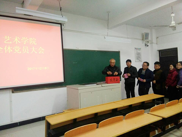 12月8日下午,艺术学院党总支换届选举党员大会在艺术楼208教室隆重召开。党总支书记李世胜及学院全体党员出席会议,李海丽同志主持了会议。会议通过了李世胜同志所做的工作报告,选举产生了李世胜、陈金强、周连峰、李海丽、王威等5名新一届党总支委员。李世胜当选为书记。