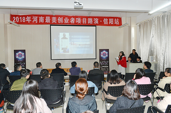 3月22日,“2018年河南省最美创业者项目路演·信阳站”活动在信阳学院创新创业园成功举办。我校和信阳师范学院、信阳农林学院、信阳职业技术学院等驻信高校的15个创新创业团队参加了本次路演活动。郑州蓝智企业咨询管理有限公司董事长杨谷禄,国家级中小企业公共服务示范平台、信阳市中小企业服务中心主任罗松,我校专职副书记、全国万名优秀创新创业导师施昌海教授和上述高校创新创业部门负责人刘佰超、严兆洋、于永国等担任了本次活动评委。四高校数百名师生参与和观摩了本次活动。