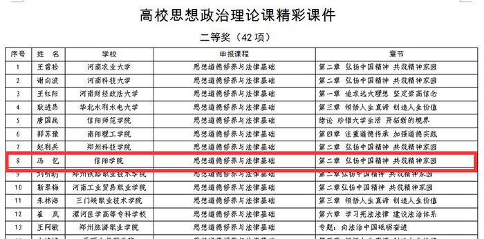 2017年,我校为认真贯彻落实全国全省高校思想政治工作会议精神和党的十九大精神,根据《中共河南省委高校工委办公室 河南省教育厅办公室关于开展高校思想政治理论课“精彩系列”征集活动的通知》(教办思政〔2017〕694号)精神,认真组织思想政治理论教学部教师开展此项活动,得到各位任课教师的积极响应。大家在坚持完成各门课程教学任务的同时,认真总结授课感想和经验,形成相应成果,得到上级组织的认可,获得了相应奖励。