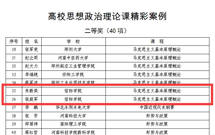 日前,中共省委高校工委、省教育厅印发了《关于公布高校思想政治理论课“精彩系列”征集活动评审结果的通知》(教思政〔2018〕44号),公布了2017年度“高校思想政治理论课“精彩系列”征集评选活动”评审结果,我校思想政治理论教学部3名教师获奖。其中,张庭军、朱新荣两位老师获得“高校思想政治理论课精彩案例”二等奖,冯忆老师获得“高校思想政治理论课精彩课件”二等奖。