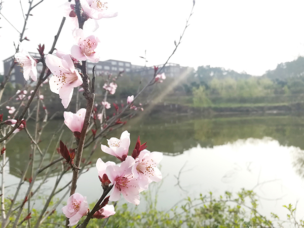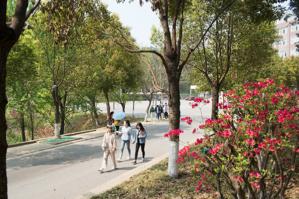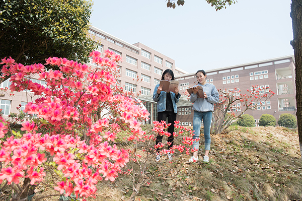 信院的春天如约而至。红艳的杜鹃花灼灼绽放,灿如云霞,在阳光的映衬下妩媚动人,格外引人注目;洁白的玉兰花和胭脂红的樱花相互交映,宛如少女羞红的脸颊;刚萌芽的柳枝,翠得要滴出水来;桃花分外妖娆,散发出来的阵阵清香沁人心脾;迎春花簇簇拥拥装饰着校园,满山遍野都散发着勃勃生机。满院甜蜜的香草味,席卷冲撞来回,缠绕着每一张年轻美好的面容。