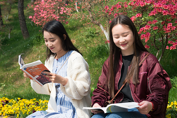 春天是万物复苏的季节,每一个生命都蓬勃向上,欣欣向荣,不经意间几声小鸟的啁啾,一只跳跃觅食的喜鹊,或是微风送来的一阵花香,都是对满怀希望最好的奖赏。“读书不觉已春深,一寸光阴一寸金”,可爱的学子们同样充满了朝气,他们或漫步在青石小径上、或坐在草坪上,读书小憩,畅谈人生,笑声明媚了整个春光。他们无不被身边的美好气息所熏陶,思想境界和道德情操得到升华,立志为民族复兴而勤学笃行,在新时代展示新形象。