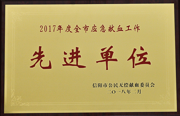 近日,信阳市公民无偿献血委员会对我校广大师生在过去一年来积极投身全市应急献血工作的暖心行为进行了表彰,授予学校“信阳市应急献血工作先进单位”称号。