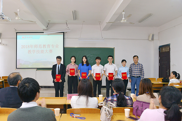 为进一步提高学生教学技能和实践应用能力,5月11日上午,我校2018年师范教育专业教学技能比赛在人文楼教室分6组进行。副校长毛海涛出席了赛事活动。教务处工作人员及师生代表观摩了竞赛活动。