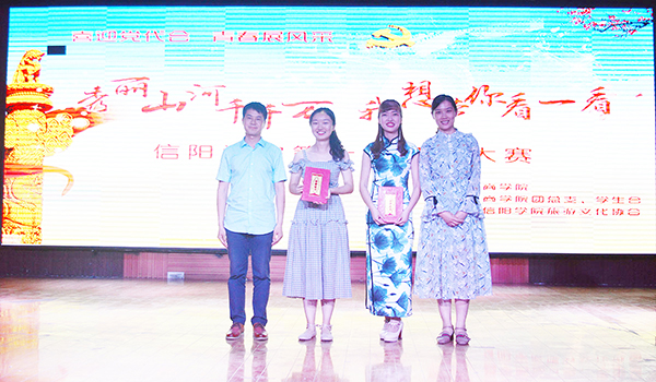本届导游大赛决赛分为导游讲解和才艺展示两个环节。来自四个不同学院的10名选手凭借自己出色的表现,经过初赛和复赛的激烈角逐,走进决赛现场。他们激情满怀,时而带领我们领略山东泰山的壮丽,时而又带领我们感受焦作云台山的秀美;跟随他们的步伐,我们时而泛舟于江南水乡浙江乌镇,时而漫步于登封少林寺感受少林功夫的博大精深。他们通过生动活泼的肢体语言和精彩的讲解给在场师生以身临其境之感。才艺展示环节,参赛选手同台打擂,各显其能,大放异彩,歌曲、舞蹈、相声、朗诵、脱口秀、茶艺表演等节目形式多样,以出色的舞台艺术魅力向到场嘉宾、评委展示了最优雅的姿态、最美丽的笑容以及最良好的状态,让在场观众感受到了旅游文化的新风尚,并博得了热烈掌声。