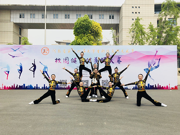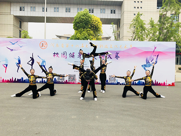 6月1日至2日,由中共河南省委宣传部、河南省教育厅、共青团河南省委、河南省文化厅、河南省学生联合会主办,河南经贸职业学院承办的河南省第十六届大学生科技文化艺术节校园健身健美操大赛隆重举行。我校代表队技压群芳,勇夺第一。