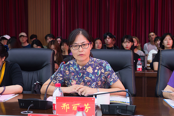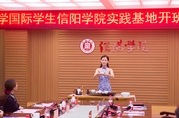 邢丽芳在讲话中对信阳学院的大力支持表示衷心感谢。她说,今天来到河南省历史文化名城、“全国十大宜居城市”信阳市,心情很激动。这里有独特的中国传统文化,有资源丰富的大别山红色文化和环境优美、景色宜人的信阳学院,深切感受到这里是体验中国文化的最佳选择。她简要介绍了南开大学汉语言文化学院的发展历程、办学特色、办学成果等,表示对本次文化实习活动充满期待。希望借此机会,增进国际学生对中国文化与社会,尤其是对河南信阳风土人情的了解,通过与信阳学院师生的交流,进一步增强国际学生的汉语应用和表达能力。她表示,南开大学国际学生信阳学院实践基地是南开大学汉语言文化学院在河南省建立的第一个实践基地,希望在这个崭新的平台上,两校加强合作,为汉语国际教育的发展贡献力量。