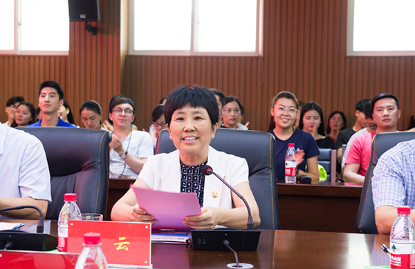 高云致欢迎辞,向南开大学汉语言文化学院的领导、老师和同学们表示热烈欢迎,并简要介绍了我校的发展历程和办学成果。她说,信阳学院与南开大学汉语言文化学院建立合作关系,共建国际学生实践基地,是学校国际交流工作的一项突破,是一件喜事,不仅能为我校铺建更宽广的中外学生互动交流平台,开阔学生的国际视野,而且对加快学校国际化办学进程、提升国际化品位起到重要的促进作用。她表示,这次文化实习活动是一次难得的学习交流机会,希望两校据此进一步增进友情、深化合作,在教师互访、学生交换、资源共享、专业共建、文化交流等方面开发更多、更好的合作项目,秉承“国际视野、开放办学”理念,推动两校国际交流工作跃上新台阶。