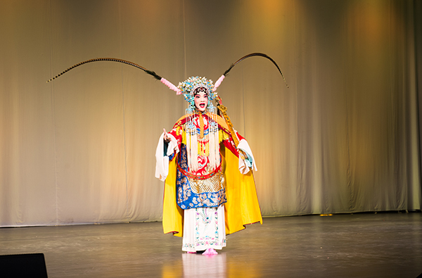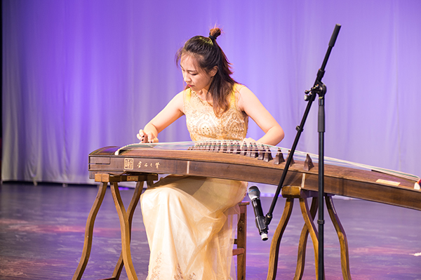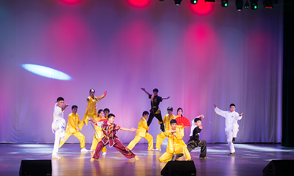 短暂茶歇后,国际学生在音乐厅观看了我校师生精心编排的极具地方特色的文艺演出。原创信阳民歌《我来到了大别山》、甘肃庆阳民歌改编的钢琴曲《绣金匾》、富有陕西地方特点的古筝曲《秦土情》等用不同的表现形式使大家领略了中国韵味十足、风格鲜明的地方音乐。著名豫剧选段《穆桂英挂帅》、以京剧名曲牌《夜深沉》为创作点编排的舞蹈、新编历史京剧《梨花颂》则彰显了我国戏曲文化的博大精深和唯美气质。武术表演《龙凤呈祥》的演员们“闪展敏捷若雄鹰,进击迅猛像老虎”,赢得了观众们阵阵热烈的掌声。国际学生即兴表演了京东大鼓《送女上大学》、街舞《巴比龙》、歌曲《童话》等,节目精彩纷呈,展示了国际学生们的青春风采以及对中国文化的热爱。演出在国际学生和我校学生的合唱《朋友》优美的旋律中圆满结束。