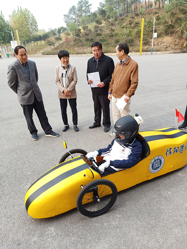 我校参赛队员们从今年1月便积极准备,在肖生发教授指导下,张锐老师带领同学们利用课余时间,主动放弃寒暑假休息,废寝忘食地投入到赛车的设计、制作、调校和驾驶练习中。队员们把课堂上学习到的专业课知识应用到赛车车架、车身的制造中,车身采用玻璃钢制作的外壳成型技术,使车身减重百分之二十五,真正做到理论与实践的有机结合、学以致用。我校节能车队命名为“信拓者”,由汽车专业本科二年级的优秀学生组成。