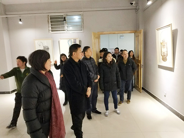 开幕式结束后,高峰等校领导在张瑞瑞等陪同下,饶有兴致地观看了展览作品。本次作品展共分两个部分,一部分是2016级国画方向学生在江西婺源的写生作品以及2017级油画方向学生在甪直古镇的写生作品,另一部分是2018级新生的精微素描写生作品。展览时间为12月6日-12月15日。