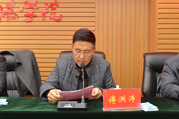 傅洪涛宣读了学校理事会《关于成立教育学院 马克思主义学院 大数据与人工智能学院的通知》和有关干部聘用等文件。