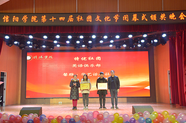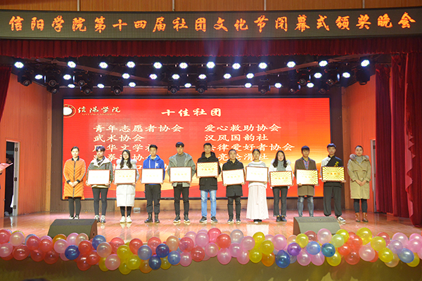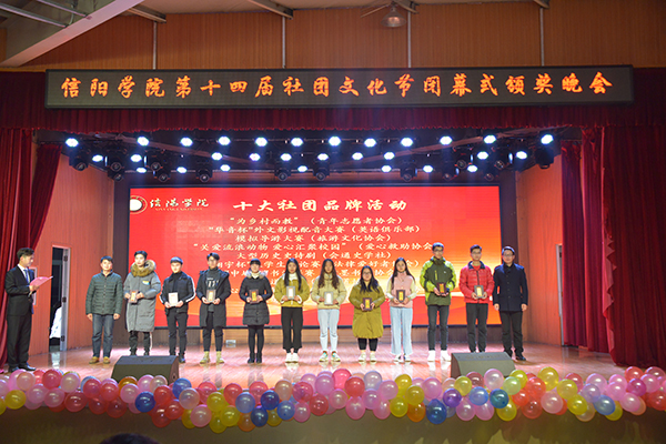 历时一个多月的第十四届社团文化节,于12月24日晚胜利闭幕。学校在大学生活动中心举行闭幕式暨颁奖晚会,对先进集体和个人进行表彰。校党委专职副书记施昌海、副校长王志华出席颁奖晚会。有关单位负责人张富庄、李赟、张甲楠、胡秀云、李肖利、余婷婷、郑山峰及各学院学工秘书、团总支书记、社团指导教师代表、各学生社团成员代表共同观看了本场晚会。