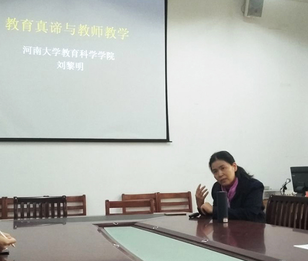 3月19日下午,河南大学刘黎明教授应邀在我校社科楼107会议室作了题为“教育真谛与教师教学”的学术报告。教育学院领导和干部教师聆听了报告。